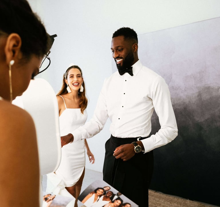 Our wedding photo booths are more than just a camera. It's a hub of excitement and interaction, encouraging your loved ones to come together, strike poses, and create memories that will be talked about for years to come. Every element is curated to spark creativity and capture genuine moments of pure happiness.